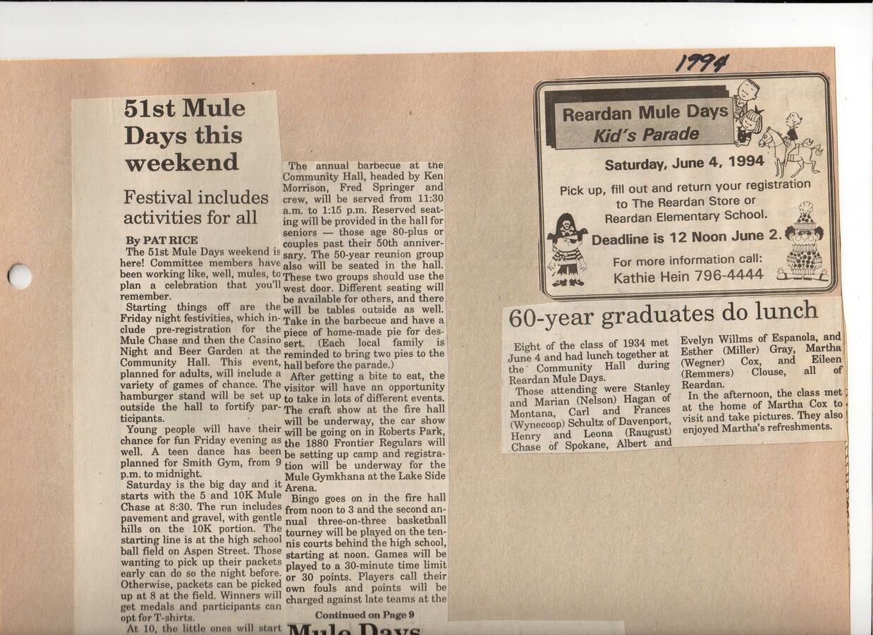 This page is from a scrapbook held by the Reardan Memorial Library about the Reardan Mule Days. 007