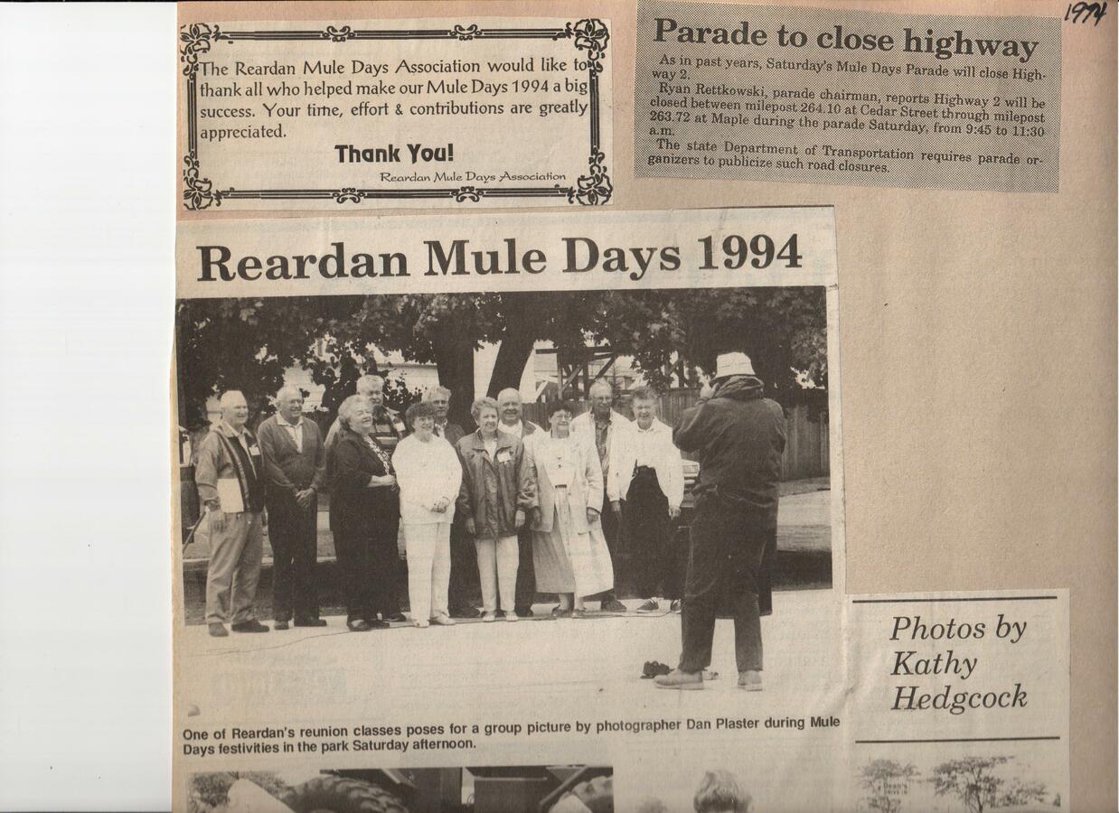 This page is from a scrapbook held by the Reardan Memorial Library about the Reardan Mule Days. 008