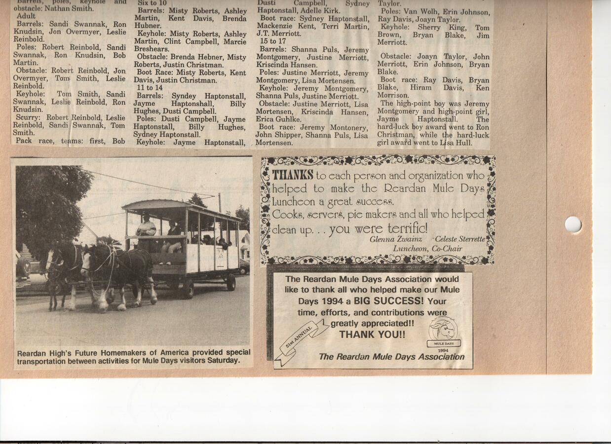 This page is from a scrapbook held by the Reardan Memorial Library about the Reardan Mule Days. 013