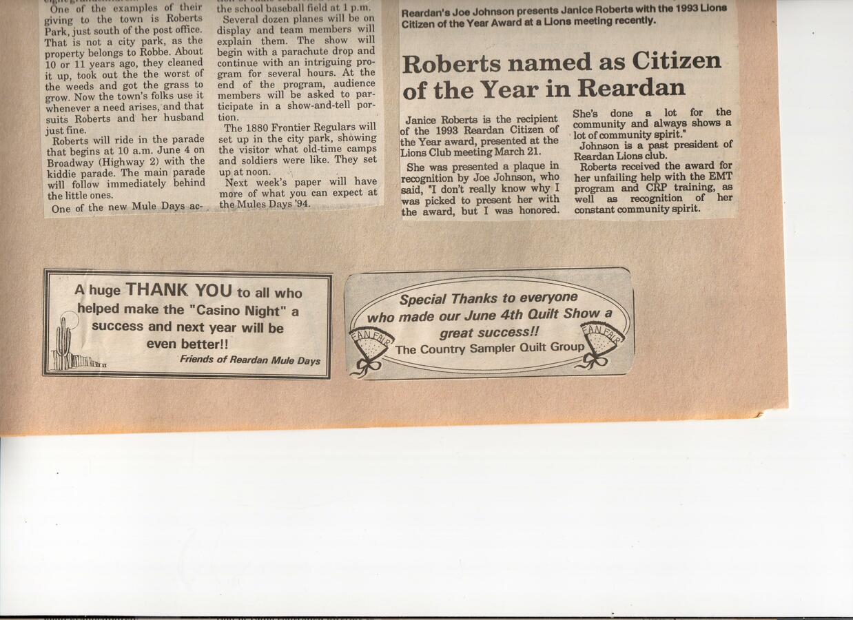 This page is from a scrapbook held by the Reardan Memorial Library about the Reardan Mule Days. 016