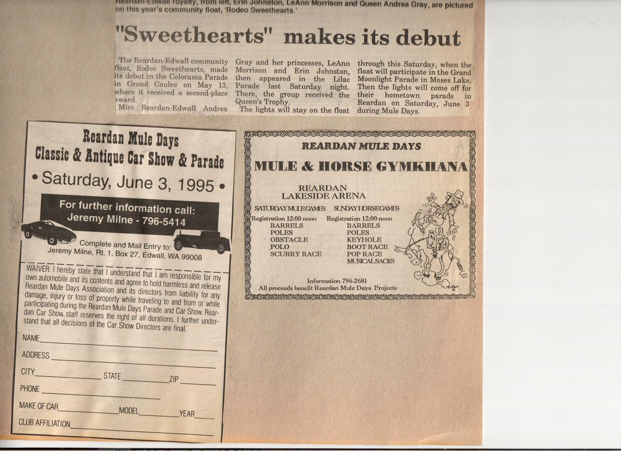 This page is from a scrapbook held by the Reardan Memorial Library about the Reardan Mule Days. 010