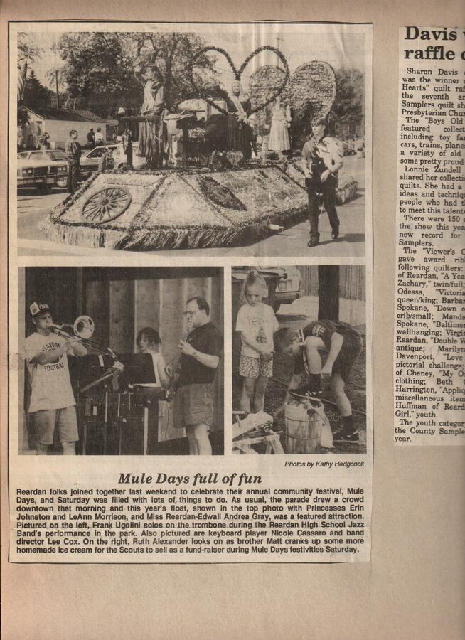 This page is from a scrapbook held by the Reardan Memorial Library about the Reardan Mule Days. 011
