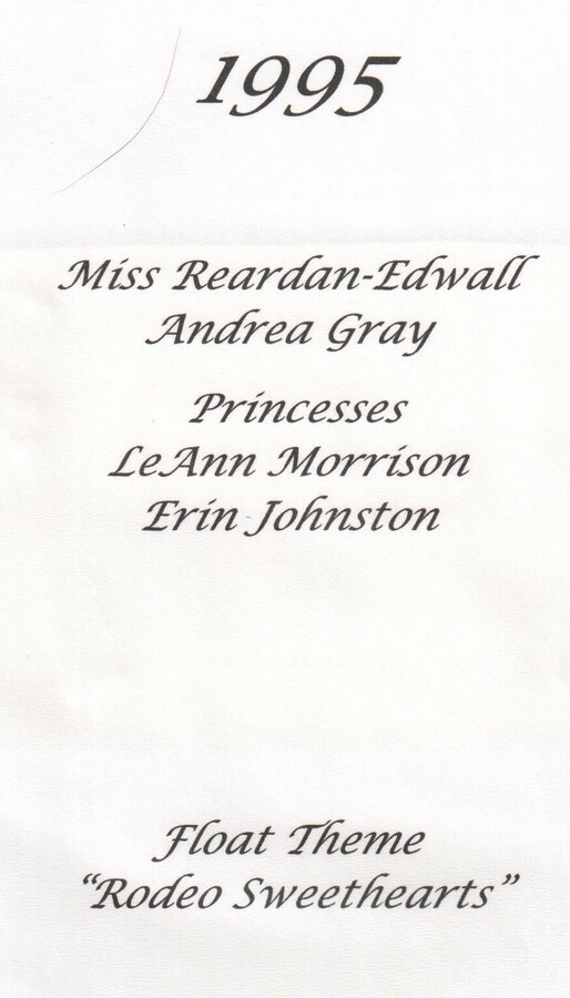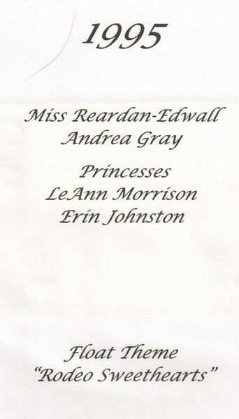 This page is from a scrapbook held by the Reardan Memorial Library about the Reardan Royalty. 1995 royalty 000
