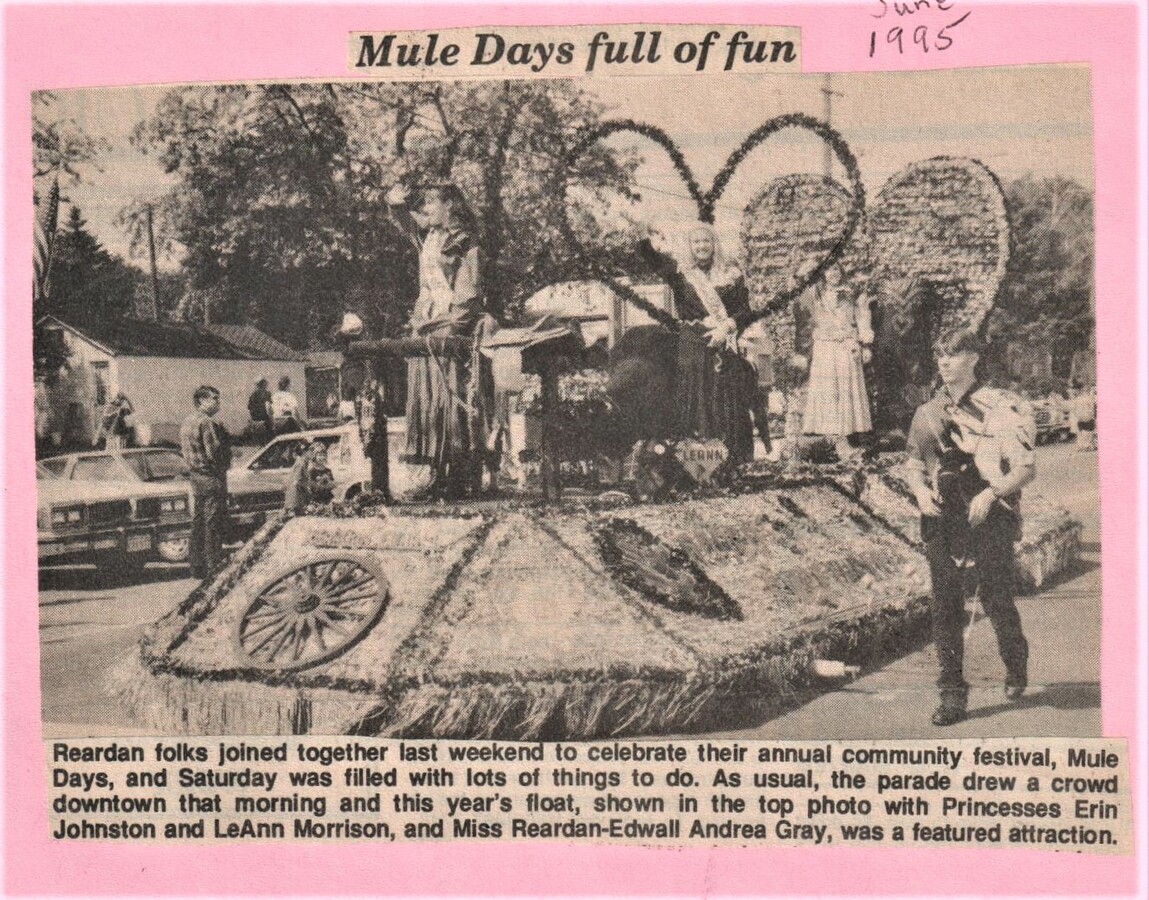 This page is from a scrapbook held by the Reardan Memorial Library about the Reardan Royalty. 1995 royalty 007