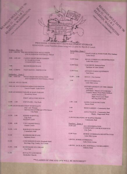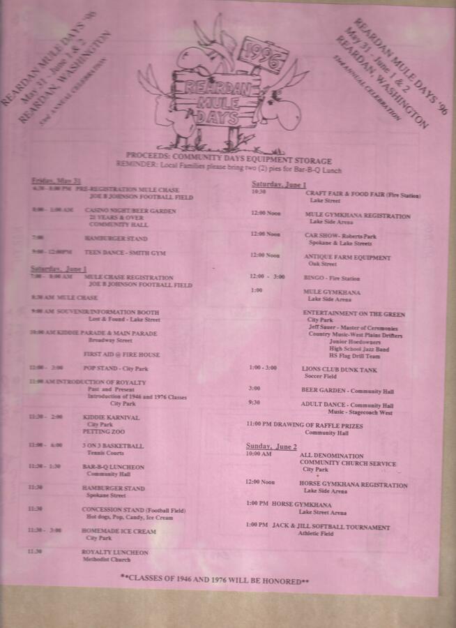 This page is from a scrapbook held by the Reardan Memorial Library about the Reardan Mule Days. 000