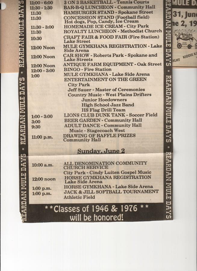 This page is from a scrapbook held by the Reardan Memorial Library about the Reardan Mule Days. 003