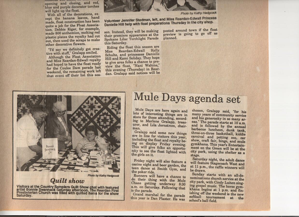 This page is from a scrapbook held by the Reardan Memorial Library about the Reardan Mule Days. 008