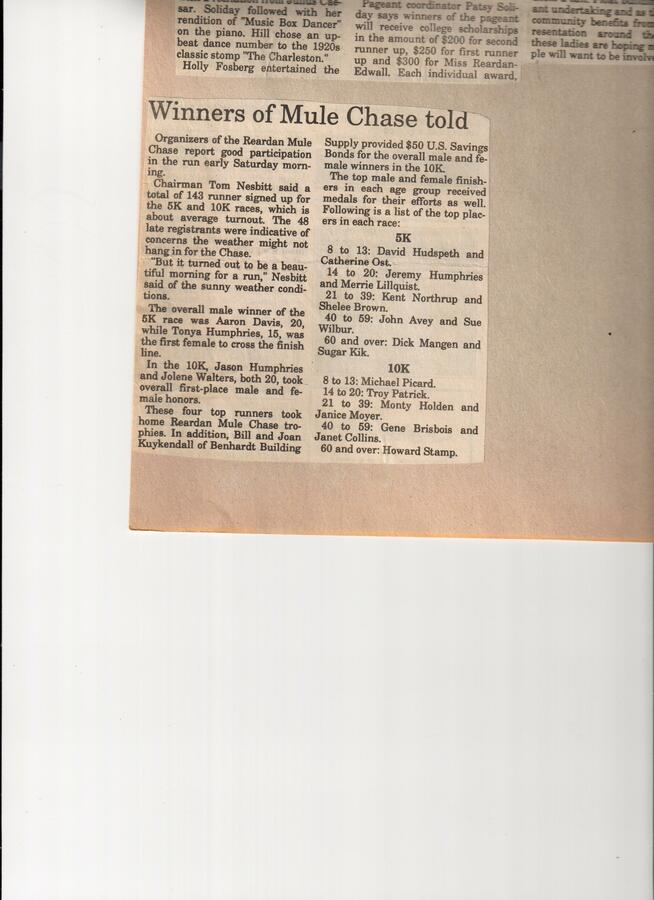 This page is from a scrapbook held by the Reardan Memorial Library about the Reardan Mule Days. 010