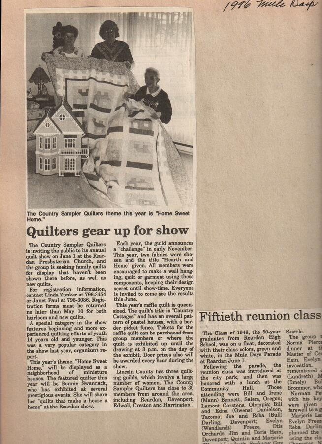 This page is from a scrapbook held by the Reardan Memorial Library about the Reardan Mule Days. 012