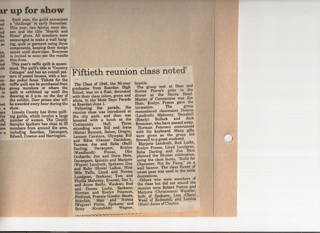 This page is from a scrapbook held by the Reardan Memorial Library about the Reardan Mule Days. 013