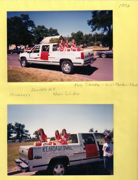This page is from a scrapbook held by the Reardan Memorial Library about the Reardan Royalty. 1996 royalty 013