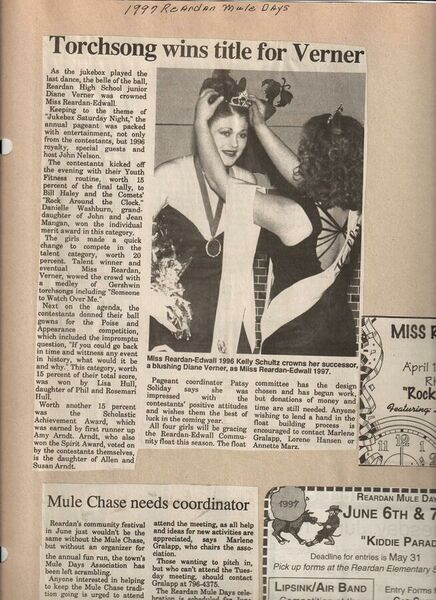 This page is from a scrapbook held by the Reardan Memorial Library about the Reardan Mule Days. 002