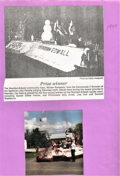 This page is from a scrapbook held by the Reardan Memorial Library about the Reardan Royalty. 1997 royalty 008