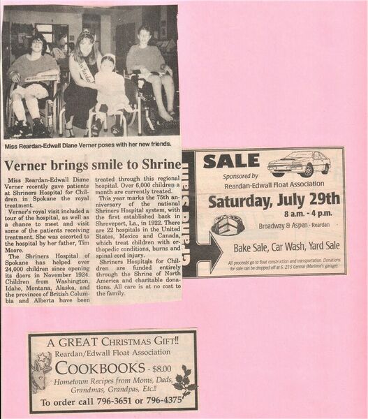 This page is from a scrapbook held by the Reardan Memorial Library about the Reardan Royalty. 1997 royalty 011
