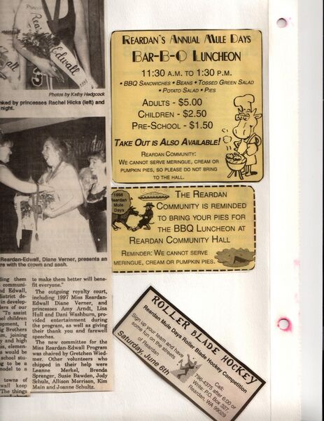 This page is from a scrapbook held by the Reardan Memorial Library about the Reardan Mule Days. 005
