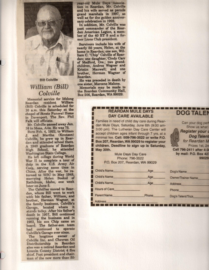 This page is from a scrapbook held by the Reardan Memorial Library about the Reardan Mule Days. 015