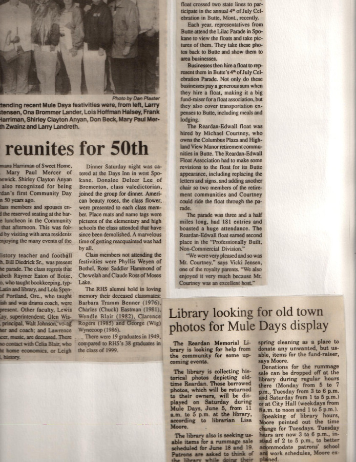 This page is from a scrapbook held by the Reardan Memorial Library about the Reardan Mule Days. 007