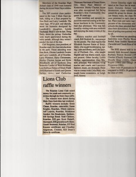 This page is from a scrapbook held by the Reardan Memorial Library about the Reardan Mule Days. 008