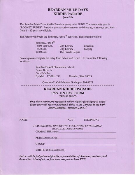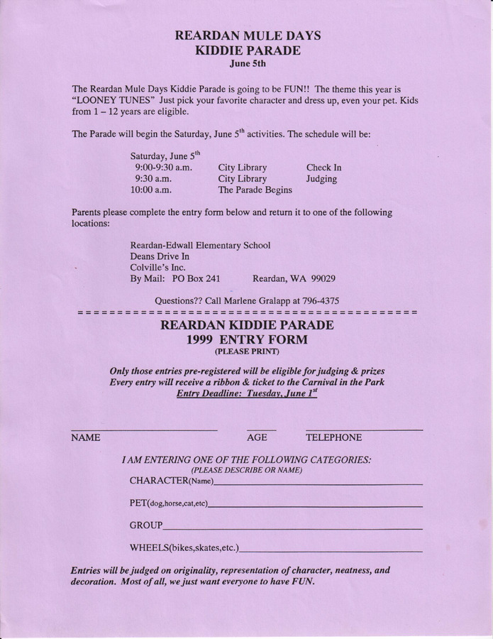 This page is from a scrapbook held by the Reardan Memorial Library about the Reardan Mule Days. 046