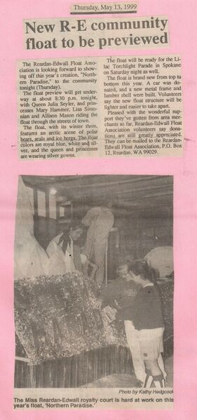 This page is from a scrapbook held by the Reardan Memorial Library about the Reardan Royalty. 1999 royalty 022