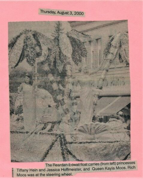 This page is from a scrapbook held by the Reardan Memorial Library about the Reardan Royalty. 2000 royalty 003