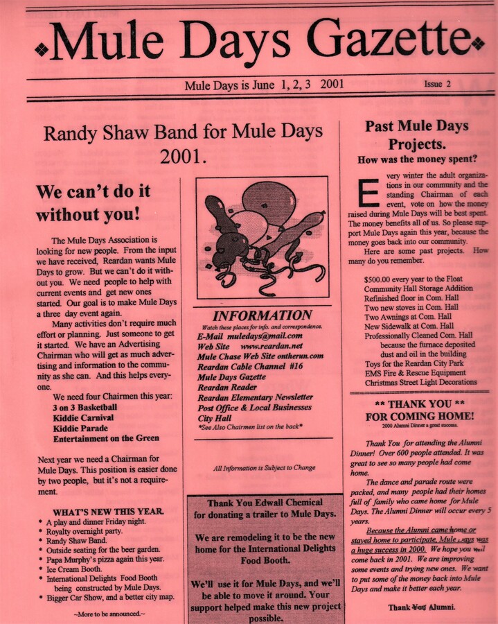 This page is from a scrapbook held by the Reardan Memorial Library about the Reardan Mule Days. 077