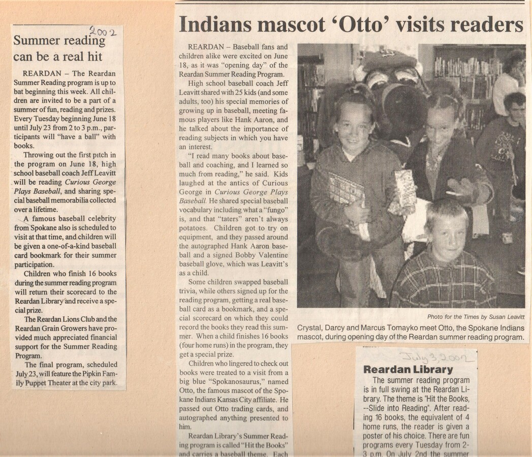 from Memorial Library scrapbook held by the Reardan Memorial Library.