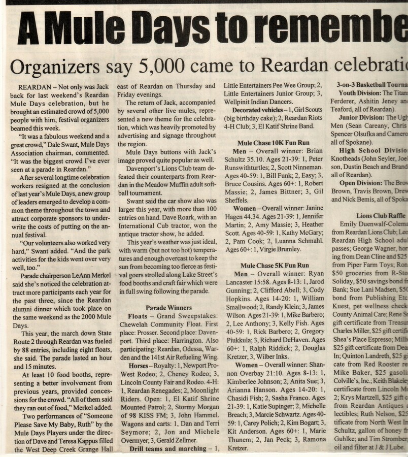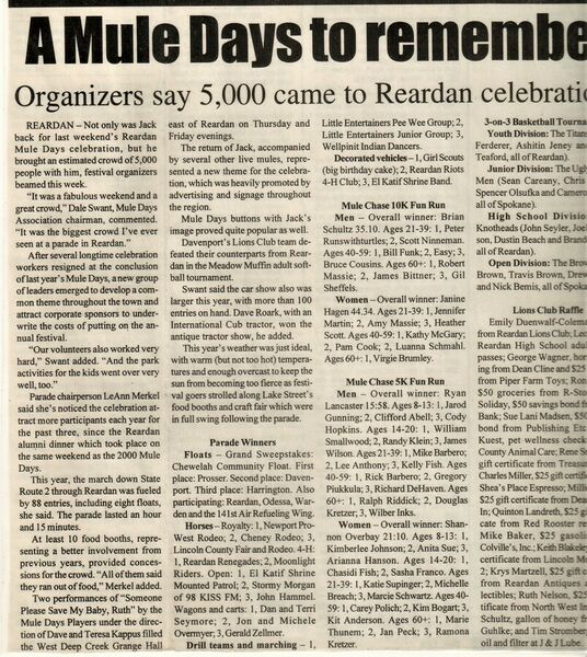 This page is from a scrapbook held by the Reardan Memorial Library about the Reardan Mule Days. 003