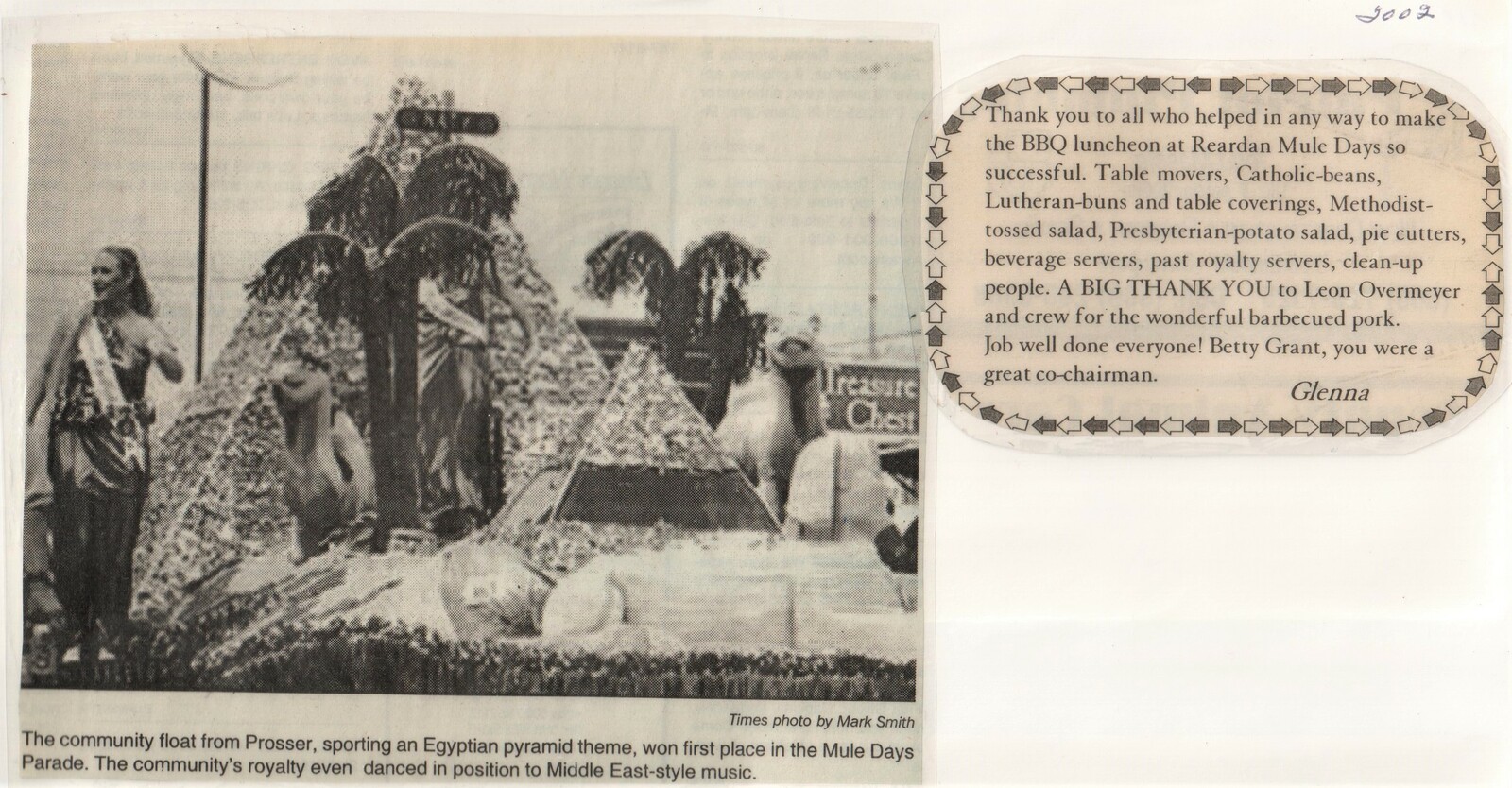 This page is from a scrapbook held by the Reardan Memorial Library about the Reardan Mule Days. 010