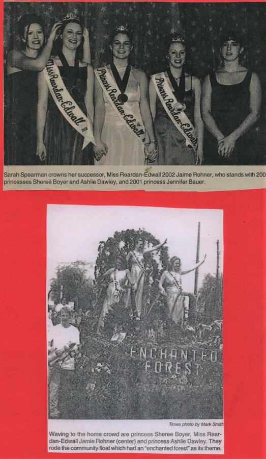 This page is from a scrapbook held by the Reardan Memorial Library about Reardan Royalty. 2002 royalty 002