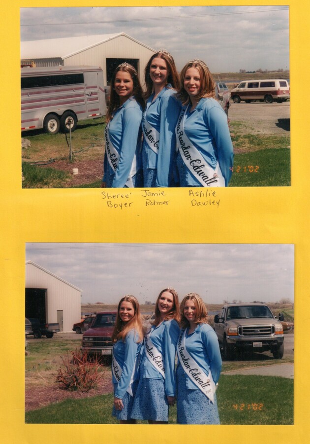 This page is from a scrapbook held by the Reardan Memorial Library about Reardan Royalty. 2002 royalty 006