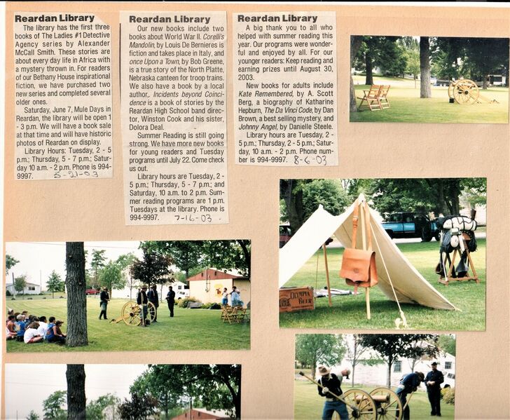 from Memorial Library scrapbook held by the Reardan Memorial Library.