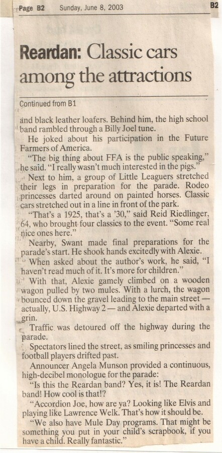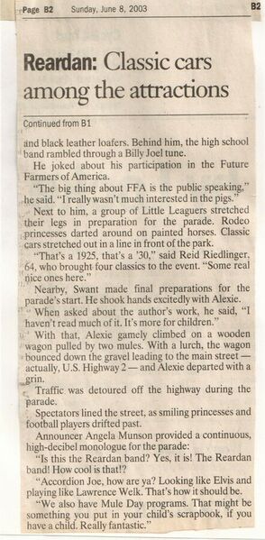This page is from a scrapbook held by the Reardan Memorial Library about the Reardan Mule Days.