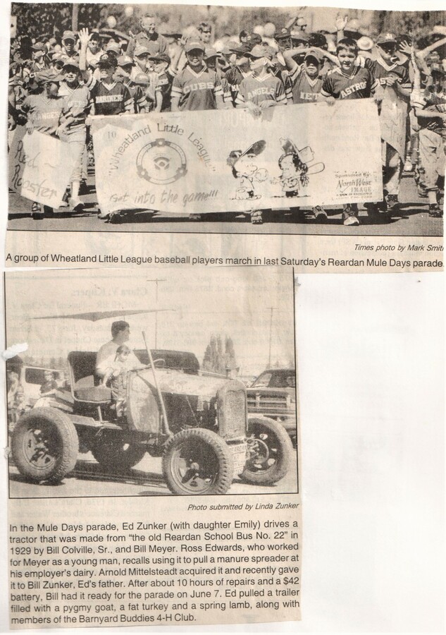 This page is from a scrapbook held by the Reardan Memorial Library about the Reardan Mule Days.