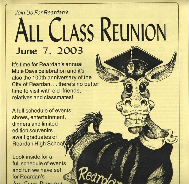 This page is from a scrapbook held by the Reardan Memorial Library about the Reardan Mule Days.