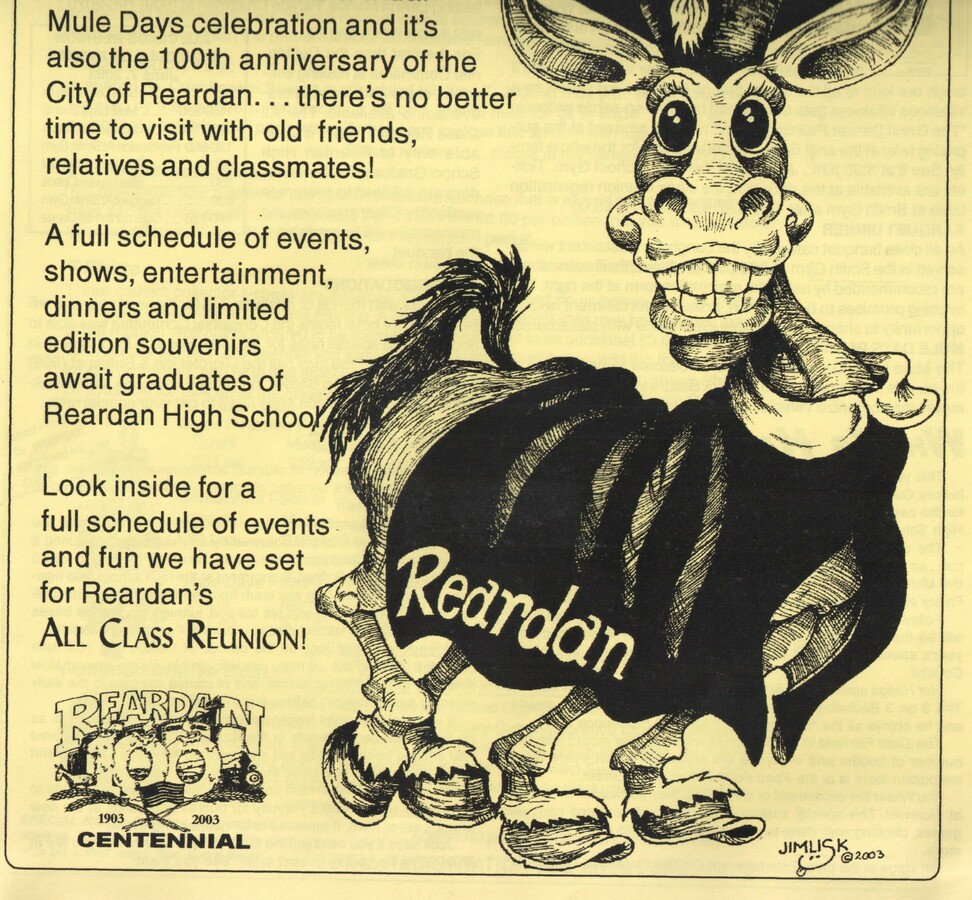 This page is from a scrapbook held by the Reardan Memorial Library about the Reardan Mule Days.