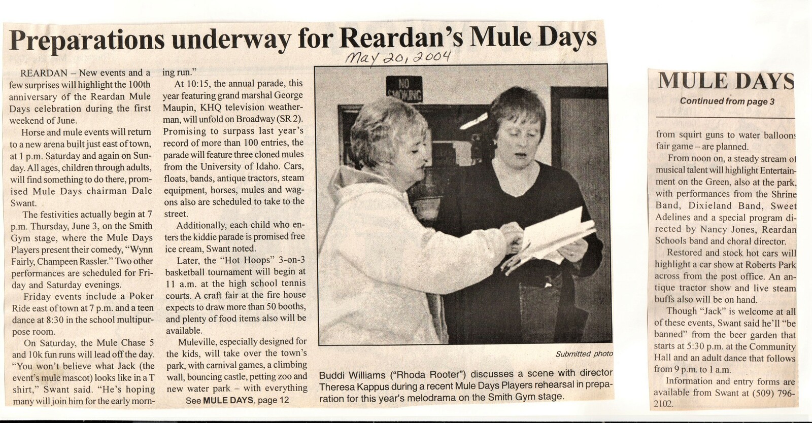This page is from a scrapbook held by the Reardan Memorial Library about the Reardan Mule Days. 016