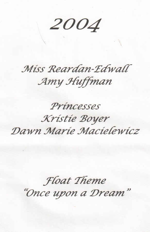This page is from a scrapbook held by the Reardan Memorial Library about the Reardan Royalty. 2004 royalty 000