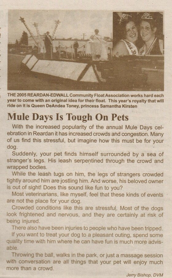 This page is from a scrapbook held by the Reardan Memorial Library about the Reardan Royalty. 2005 royalty 220