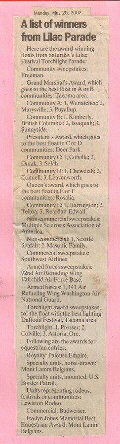This page is from a scrapbook held by the Reardan Memorial Library about the Reardan Royalty. 2005 royalty 034