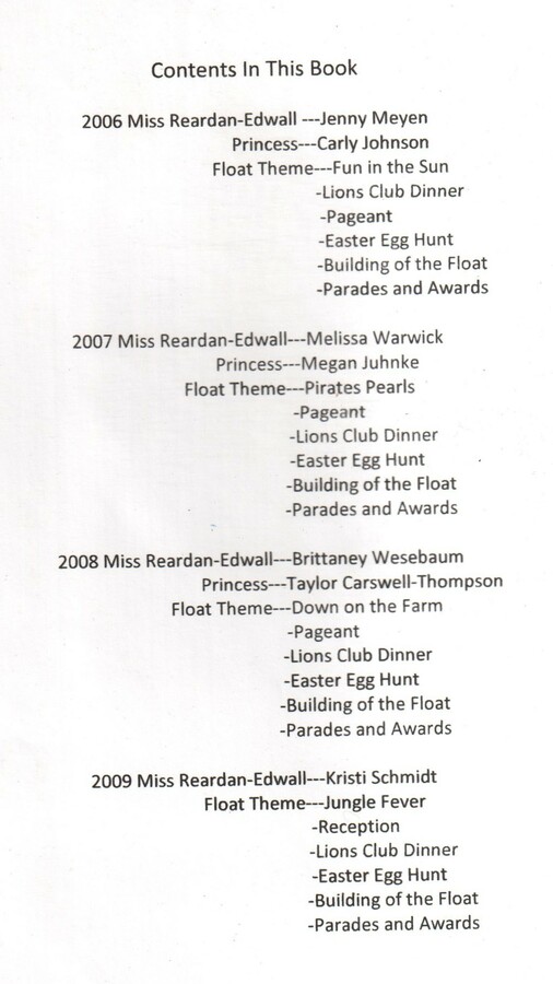 This page is from a scrapbook held by the Reardan Memorial Library about the Reardan Royalty. 2006 royalty 002