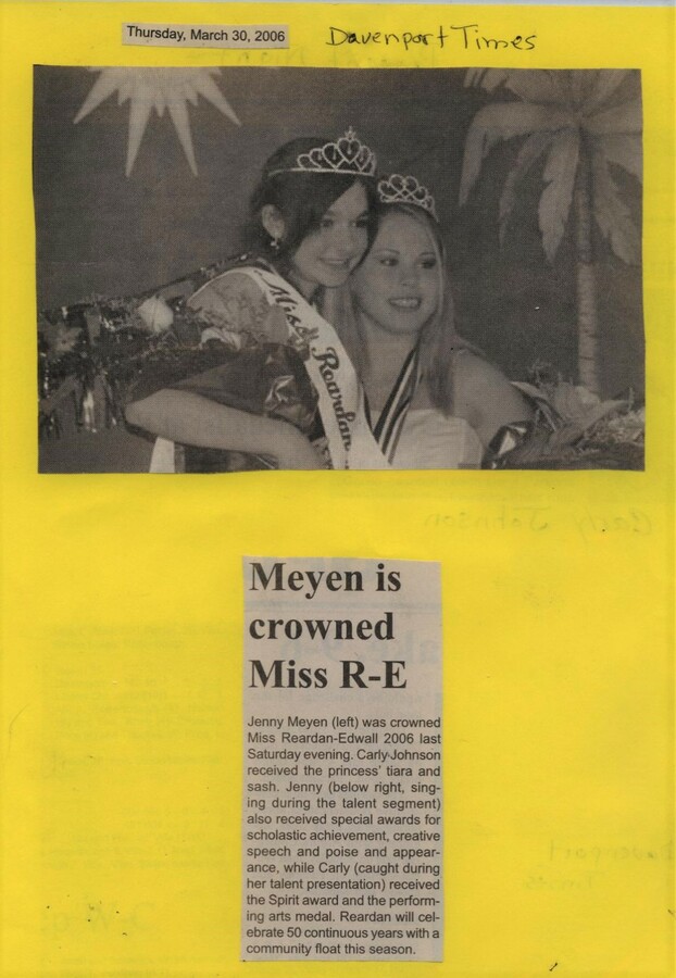 This page is from a scrapbook held by the Reardan Memorial Library about the Reardan Royalty. 2006 royalty 020