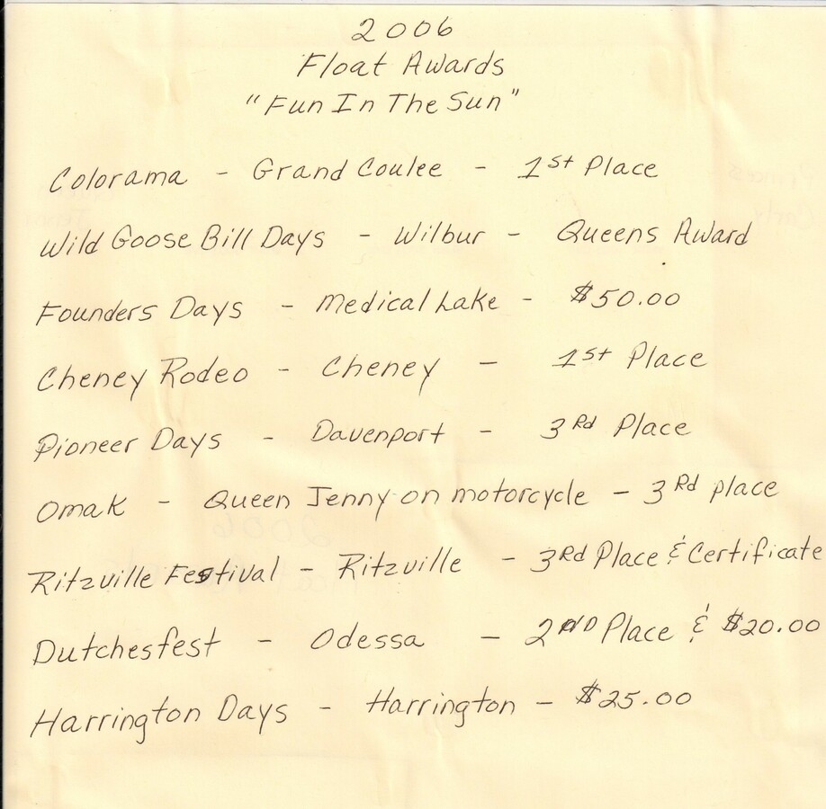 This page is from a scrapbook held by the Reardan Memorial Library about the Reardan Royalty. 2006 royalty 111