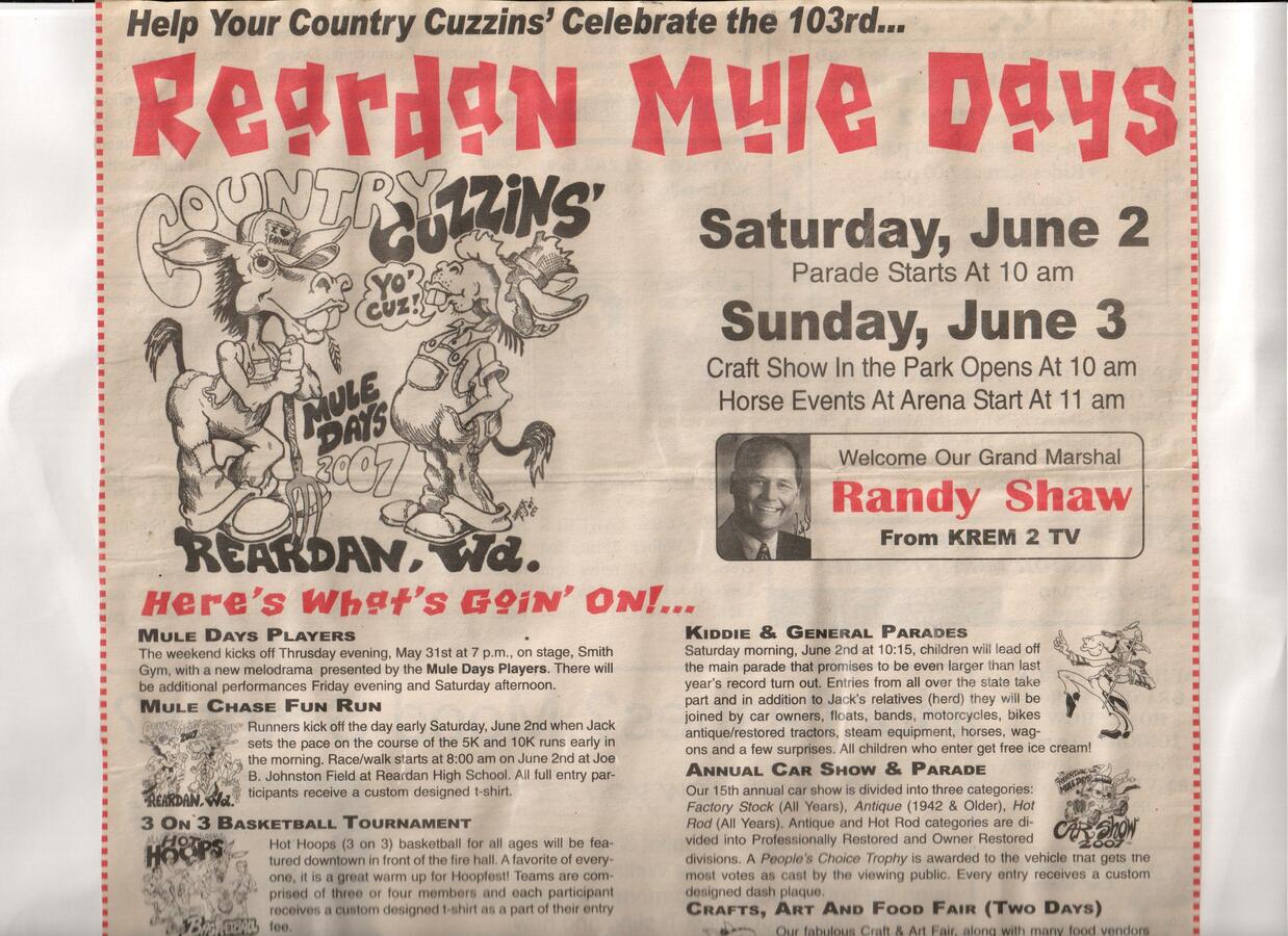 This page is from a scrapbook held by the Reardan Memorial Library about the Reardan Mule Days. 007
