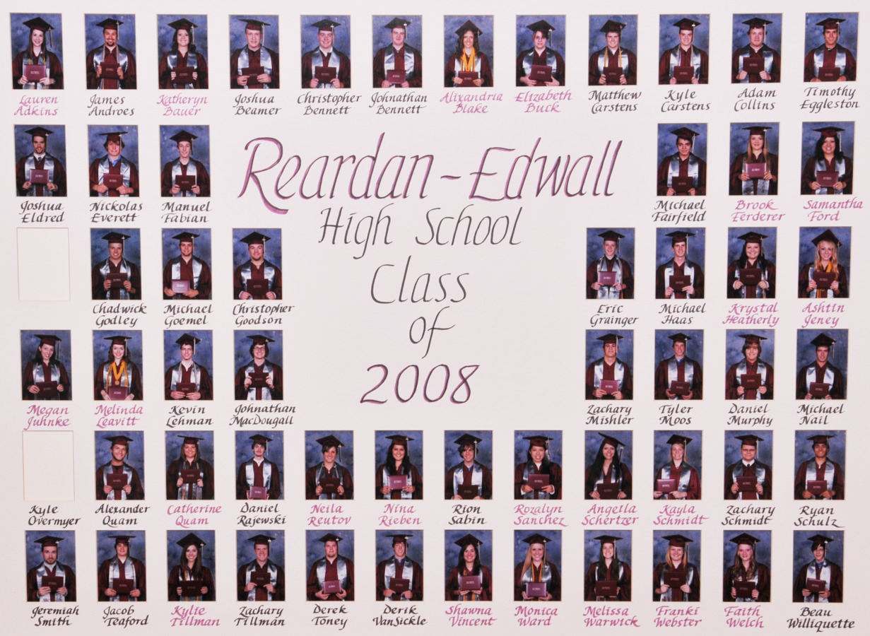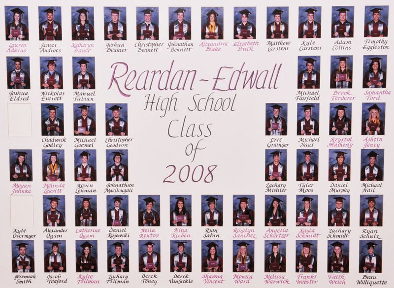 Class composite for 2008. (Photo held by Reardan High School and harvested off of their website).