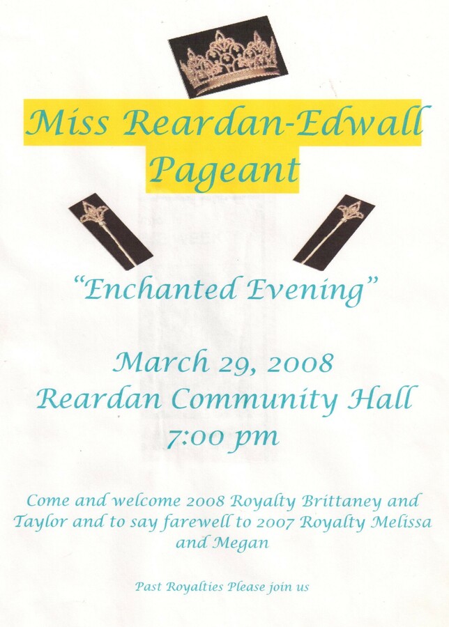 This page is from a scrapbook held by the Reardan Memorial Library about the Reardan Royalty. 2008 royalty 002
