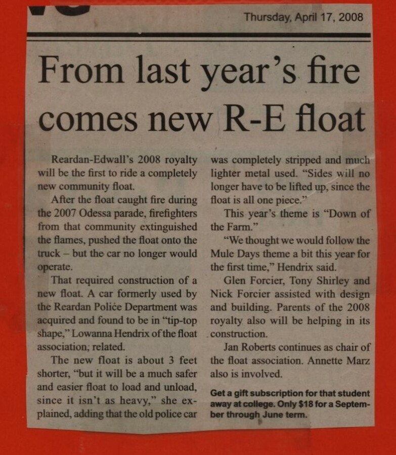 This page is from a scrapbook held by the Reardan Memorial Library about the Reardan Royalty. 2008 royalty 016