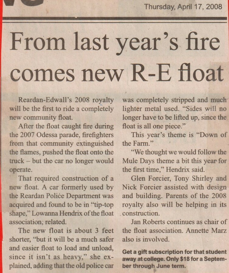 This page is from a scrapbook held by the Reardan Memorial Library about the Reardan Royalty. 2008 royalty 017