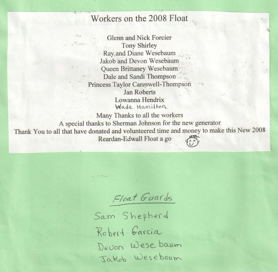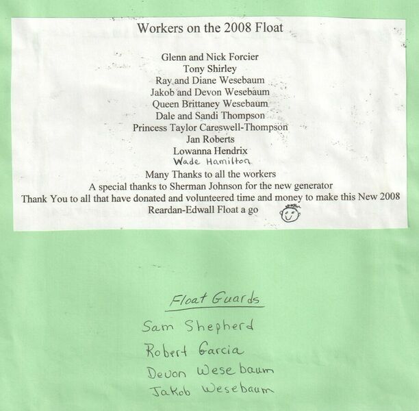 This page is from a scrapbook held by the Reardan Memorial Library about the Reardan Royalty. 2008 royalty 046