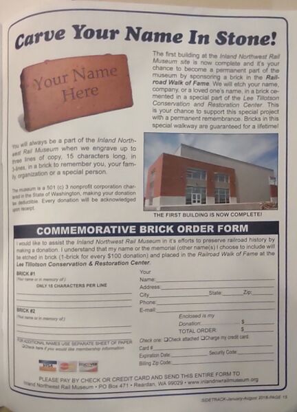 part of Sidetrack Magazine January 2016 issue on opening of Inland Northwest Rail Museum. (Held by the Spokane Public Library.)
